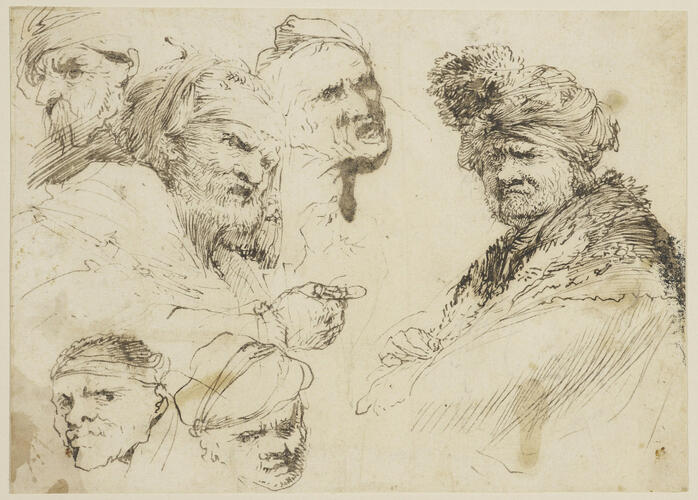 Натурализм в трактовке облика животных и склонность к показу их анатомии воспринимается как показатель сильного влияния на творчество Кастильоне работ северных художников. Определяющим для него было искусство Рембрандта, которое он мог видеть в мастерской Корнелиса де Валя и его брата Лукаса – фламандских художников, с 1620-х годов живших и работавших в Генуе, которые сыграли ведущую роль в распространении гравюр в регионе. Работы голландского мастера напрямую повлияли на интерес Кастильоне к разработке физиогномических типажей, итальянец буквально копировал образы из офорта голландского мастера «Се человек» в своих ранних этюдах голов (ил. 3). И эту же линию он продолжает в серии восточных голов, выполненных приблизительно в 1645–1650 годах, которая включает в себя офорты и две монотипии – «Голова восточного мужчины» (ил. 4) и «Голова бородатого мужчины в тюрбане» (ил. 5).
