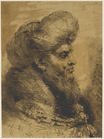 Теперь художник работает с неокрашенной доской, что дает новые художественные эффекты. В первую очередь – это возможность за счет изменения ритма штриховки, как в рисунке пером, передавать разные фактуры. Плавные свободные линии моделируют мягкие складки ткани тюрбана без резкого контраста, который дают травленые линии офортов. В этой плавности и мягкости можно увидеть сходство с акварельными листами – еще одного признака влияния на Кастильоне голландского искусства, так как акварель в XVII веке еще не получила распространения в самой Италии. Порой линии сгущаются в крупные пятна тени, что находит аналогию в проработке объемов при помощи энергичной светотеневой лепки в ранних живописных работах Рембрандта. Так монотипия оказывается буквально местом встречи разных видов искусства.