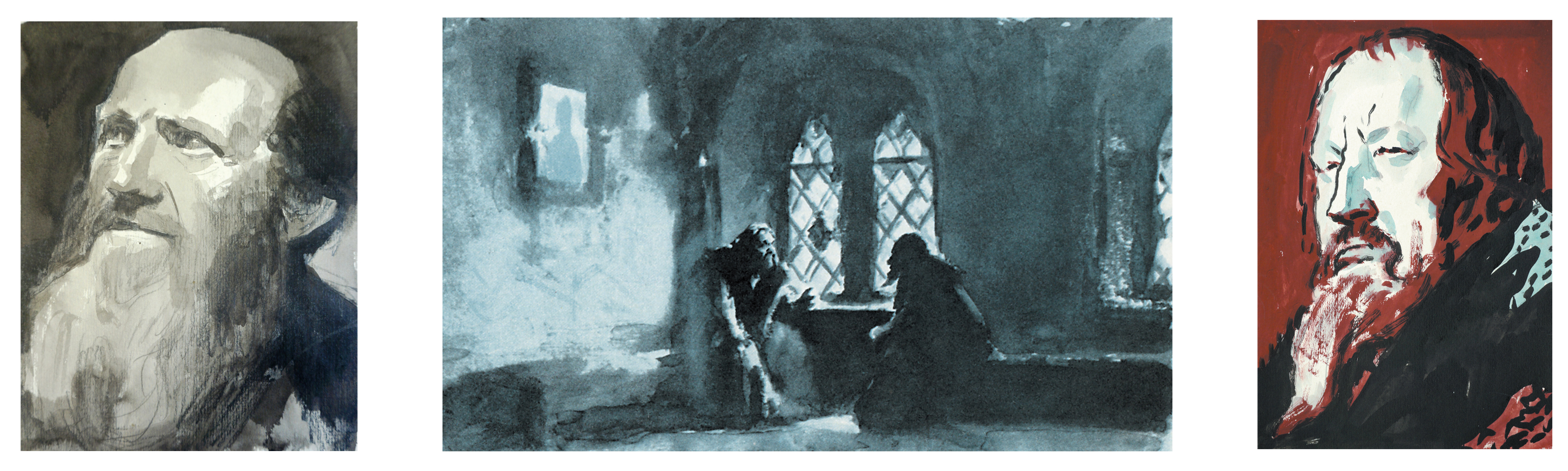A classic figure of 20th-century Soviet graphic art, Yevgeny Adolfovich Kibrik (1906–1978), throughout his creative career, sought to embody philosophical ideas imbued with humanism and love for humanity in cohesive and profound visual representations of literary characters. He aimed to create psychological portraits that became a kind of core, concentrating within themselves the complexity of historical events. In his illustrations for Alexander Pushkin’s drama “Boris Godunov”, from sketches to final versions, Kibrik followed a path of intensification and psychological deepening of the characters’ images. His artistic goal was to penetrate the character’s essence, worldview, and inner life.