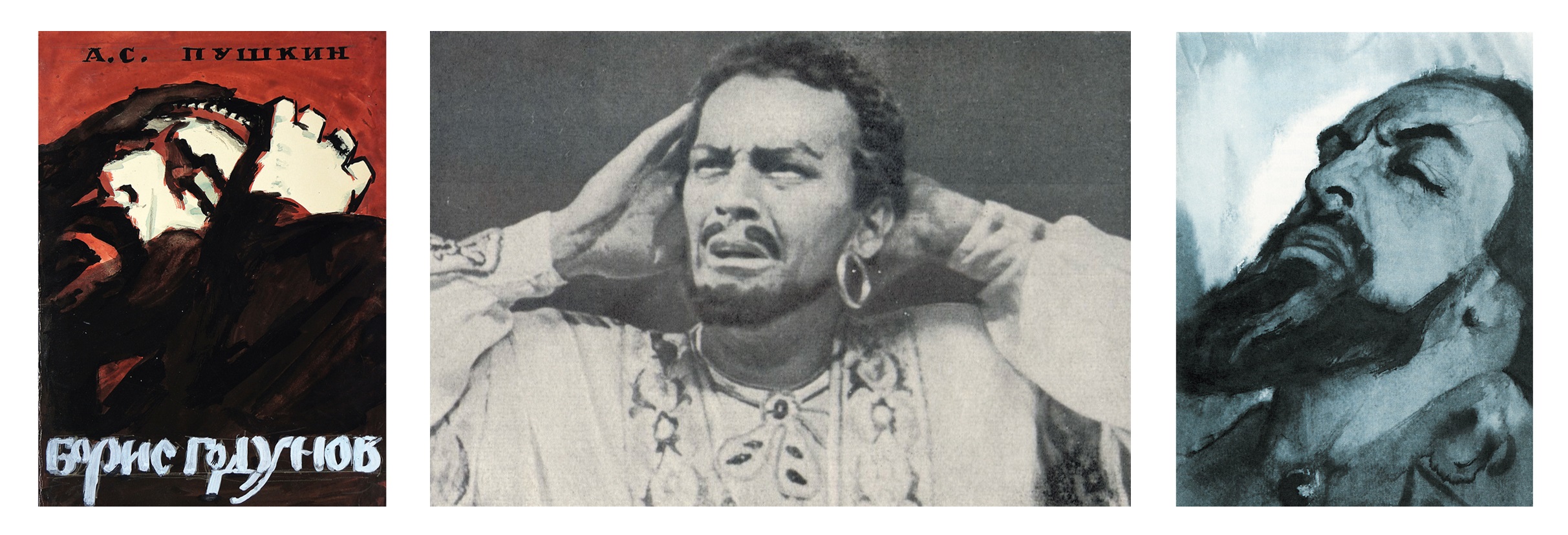 Создавая образ царя Бориса, А.С. Пушкин, хотя и опирался на исторические материалы Н.М. Карамзина, привнес также свое понимание его характера, оригинально трактовал внутреннее содержание столь неоднозначной и выдающейся фигуры. Делая наброски к портрету царя со многих моделей, Е.А. Кибрик останавливается на внешнем облике двух артистов: осетинского трагика Владимира Тхапсаева и актера МХАТа Виктора Ивановича Новосельского, изображение глаз и фигуры которого легло в основу образа Годунова.