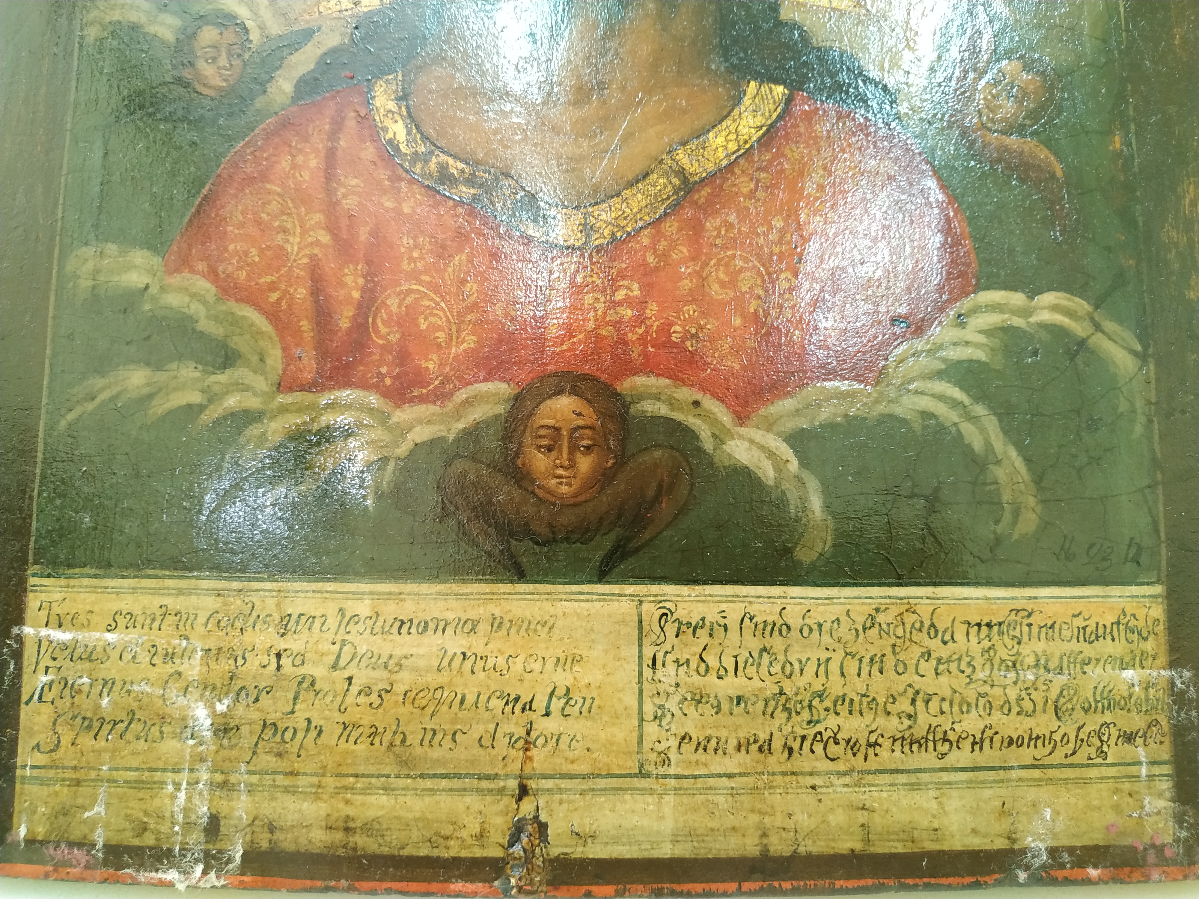 География бытования образов с надписью, содержащей стихи о Троическом догмате, могла оказаться обширнейшей: не обязательно связанной с пограничными с Польшей землями Белоруссии и Малороссии, но и с Москвой, и с далекой от столиц провинцией, где оседали носители художественного интереса к западным и южно-русским традициям, польские ссыльные и переселенцы с западных окраин Российской империи.